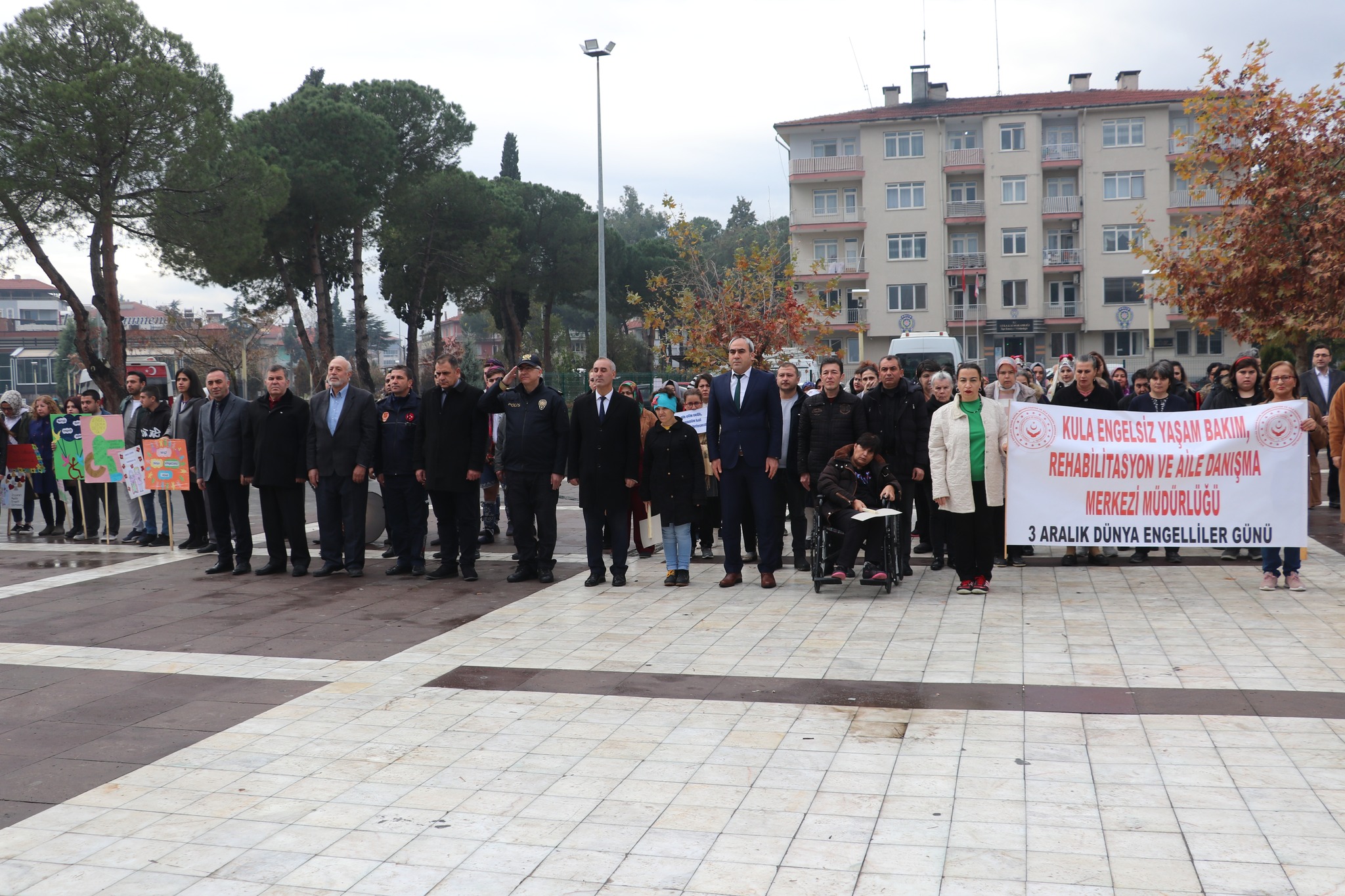 Kula İlçesinde, “3 Aralık Dünya Engelliler Günü” dolayısıyla kortej yürüyüşü ve tören düzenlendi.
