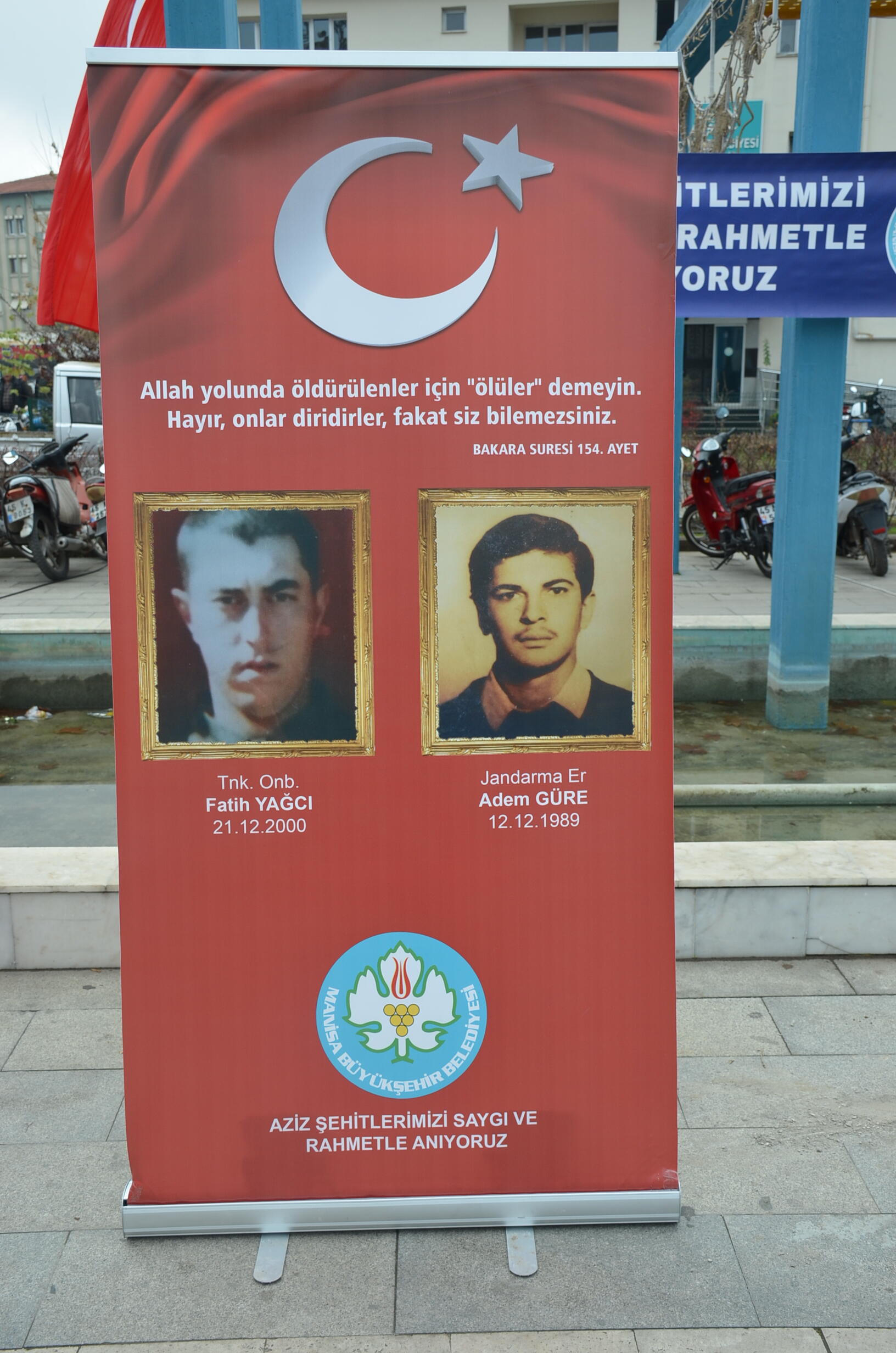 Manisa Büyükşehir Belediyesi’nin düzenlediği şehitler hayrına mevlit programları kapsamında Kulalı Şehit Jandarma Er Adem Güre ve Kulalı Şehit Tankçı Onbaşı Fatih Yağcı için şehadetlerinin yıldönümü olması dolayısıyla Kula’da anma programı düzenledi. Kula Yunus Emre ve Şehit Ömer Halisdemir Kent Meydanı’nda düzenlenen anma etkinliğine Kula Kaymakamı Birkan Tatlısöz, Belediye Başkanı Hüseyin Tosun, Manisa Büyükşehir Belediyesi Genel Sekreter Yardımcısı Ali Öztozlu, Büyükşehir Başkan Danışmanı Mimar Azmi Açıkdil, Mezarlıklar Dairesi Başkanı Orçun Abalı, Fen İşleri Dairesi Başkanı Uğur Topkaya, İlçe Emniyet Müdürü Ali Rıza Gökmen, İlçe Milli Eğitim Müdürü Zakir Okulmuş, AK Parti İlçe Başkanı Ahmet Palabıyık, MHP İlçe Başkanı Nazım Baytok, Büyükşehir Belediyesi Kula Muhtarlık İşleri Müdürü Aydın Topdemir, şehit yakınları ve sivil toplum kuruluşu temsilcileri, muhtarlar ve vatandaşlar katıldı.
