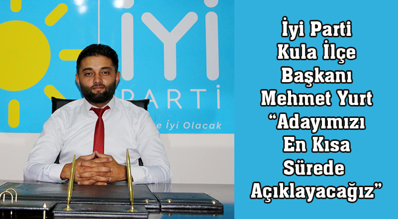 İyi Parti Kula İlçe Başkanı Mehmet Yurt 31 Mart 2024 de yapılacak olan Belediye Başkanlığı seçimlerinde başkan adayı çıkaracağız dedi.