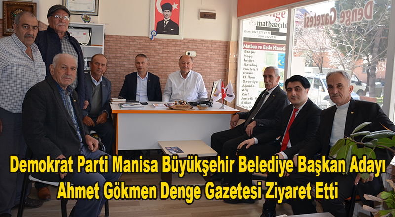 Demokrat Parti Manisa Büyükşehir Belediye Başkan Adayı Ahmet Gökmen, Demokrat Parti Manisa İl Başkanı İdris Mecek, Demokrat Parti Kula Belediye Başkan Adayı Savaş Aytimur Denge Gazetesini ziyaret etti.