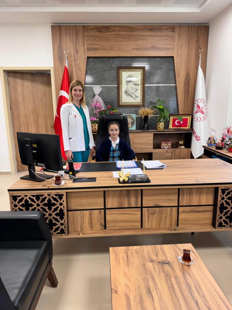 Etkinlikler Belediye Başkanlığı Makamında da devam etti.  Başkan Hikmet Dönmez’in koltuğunu bir süreliğine 4. Sınıf 10 Yaşındaki Ege Kaan Erkaya bıraktı. Minik başkan belediye çalışmaları hakkında bilgi aldı.