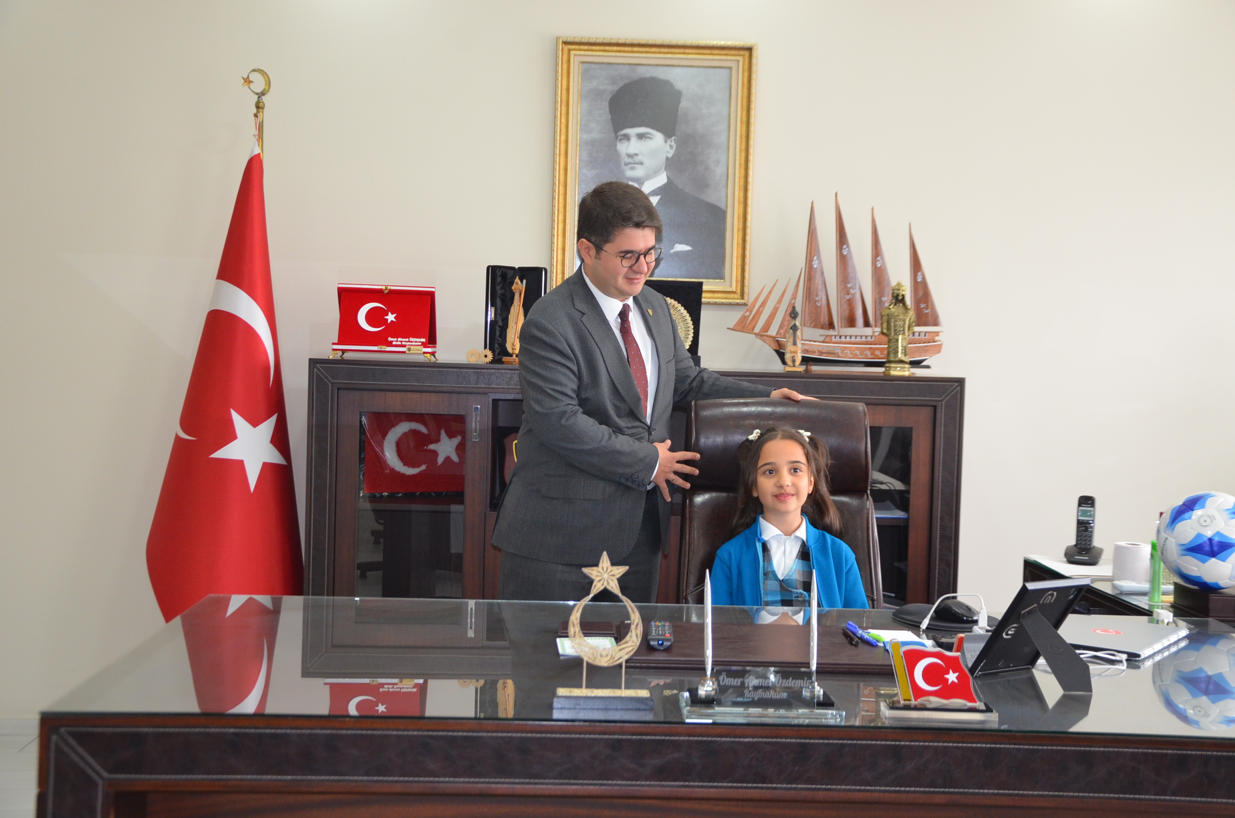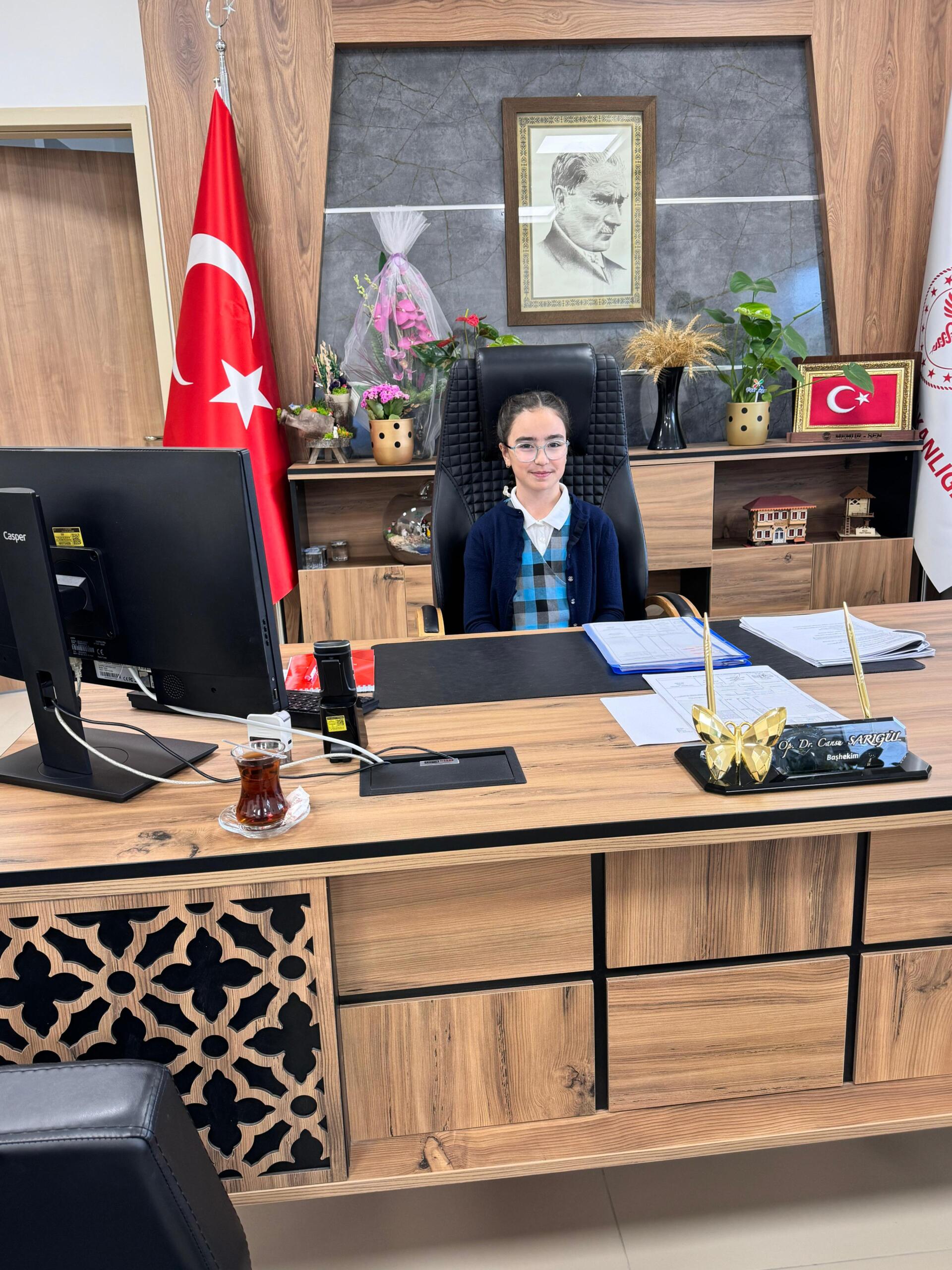 23 Nisan Ulusal Egemenlik ve Çocuk Bayramı etkinlikleri çerçevesinde 4. Sınıf öğrencisi 10 yaşındaki Hilal Candan’a, Kula Kaymakamı Ömer Ahmet Özdemir’den temsili olarak koltuğunu devraldı.