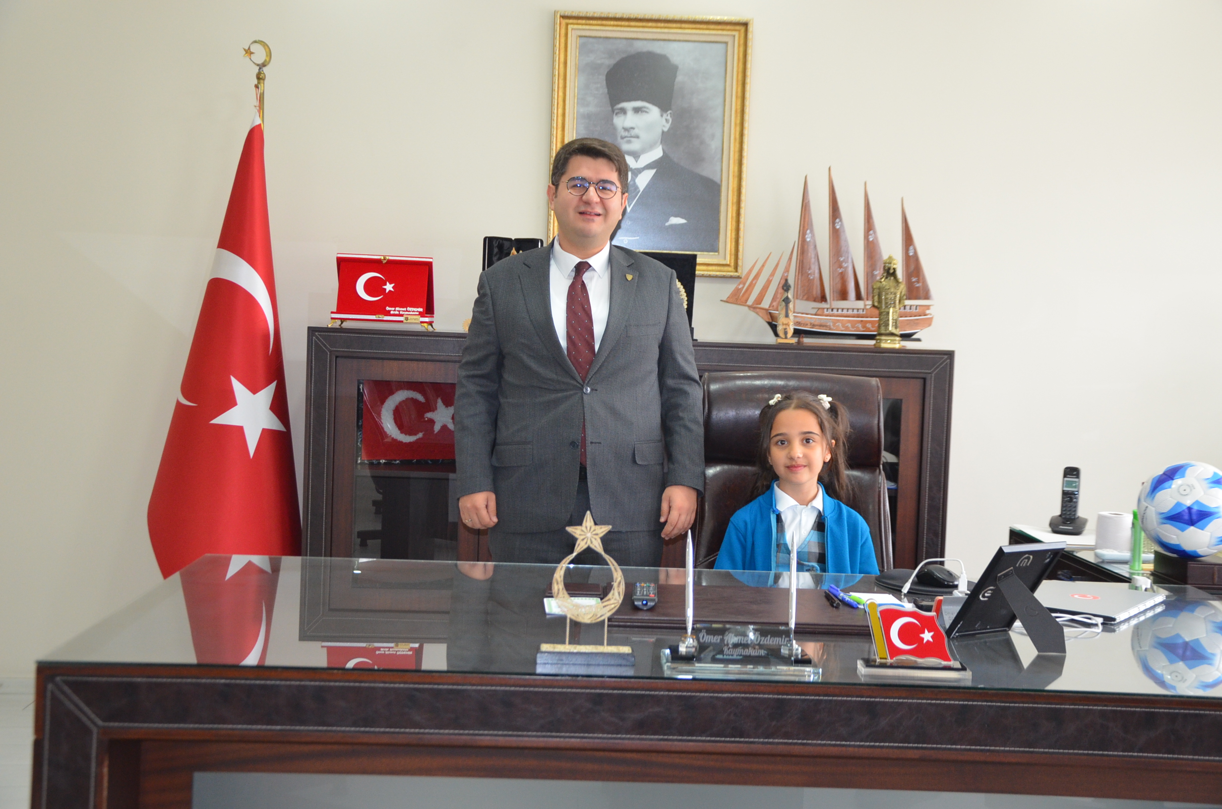 23 Nisan Kaymakamı Candan kısa süreli de olsa Kaymakam koltuğuna oturmanın mutluluğu ve heyecanını yaşadı.