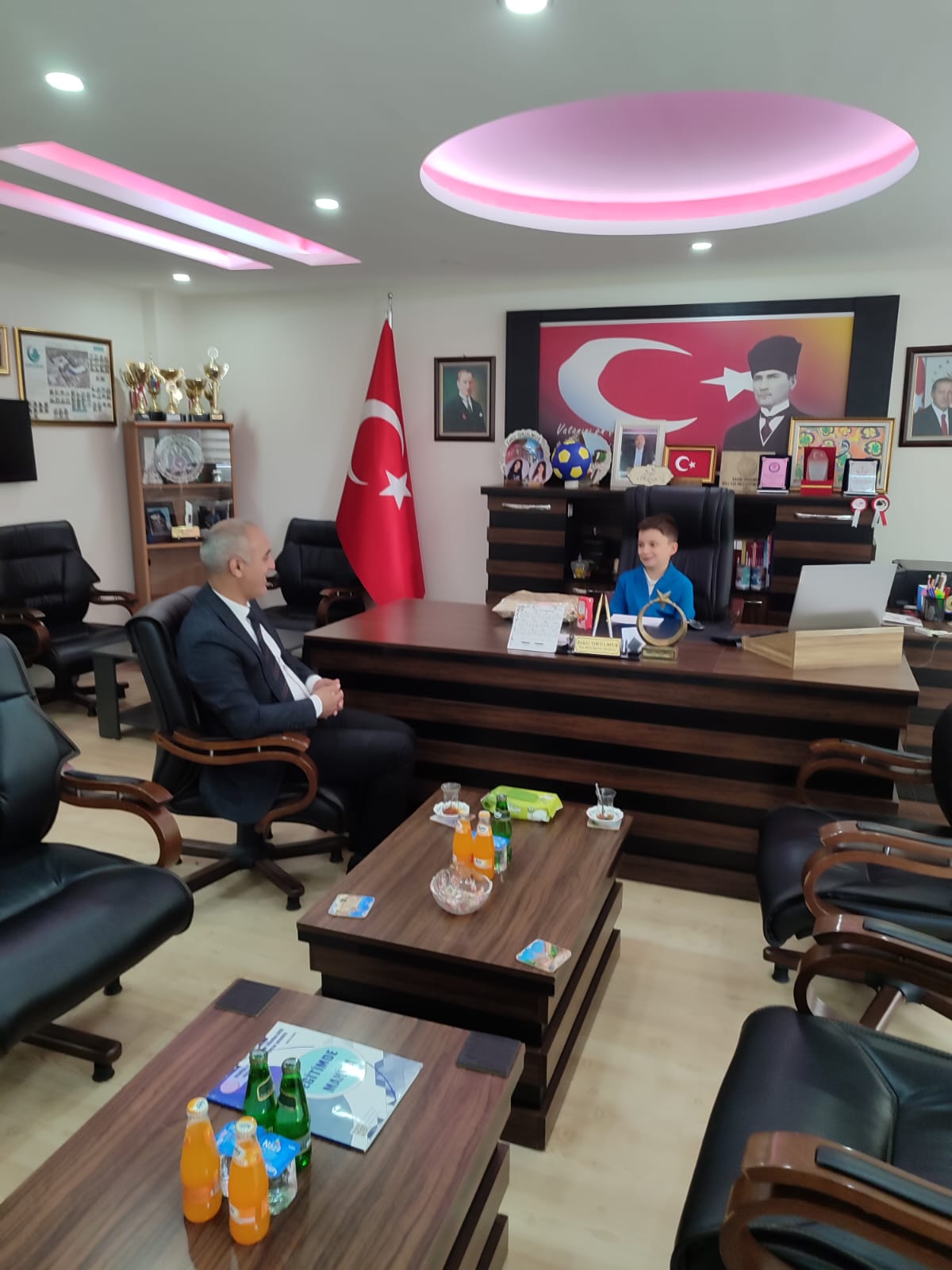 23 Nisan Ulusal Egemenlik ve Çocuk Bayramı etkinlikleri çerçevesinde öğrenciler kısa süre makam koltuklarında oturdular.