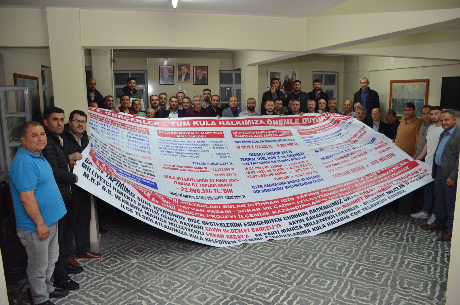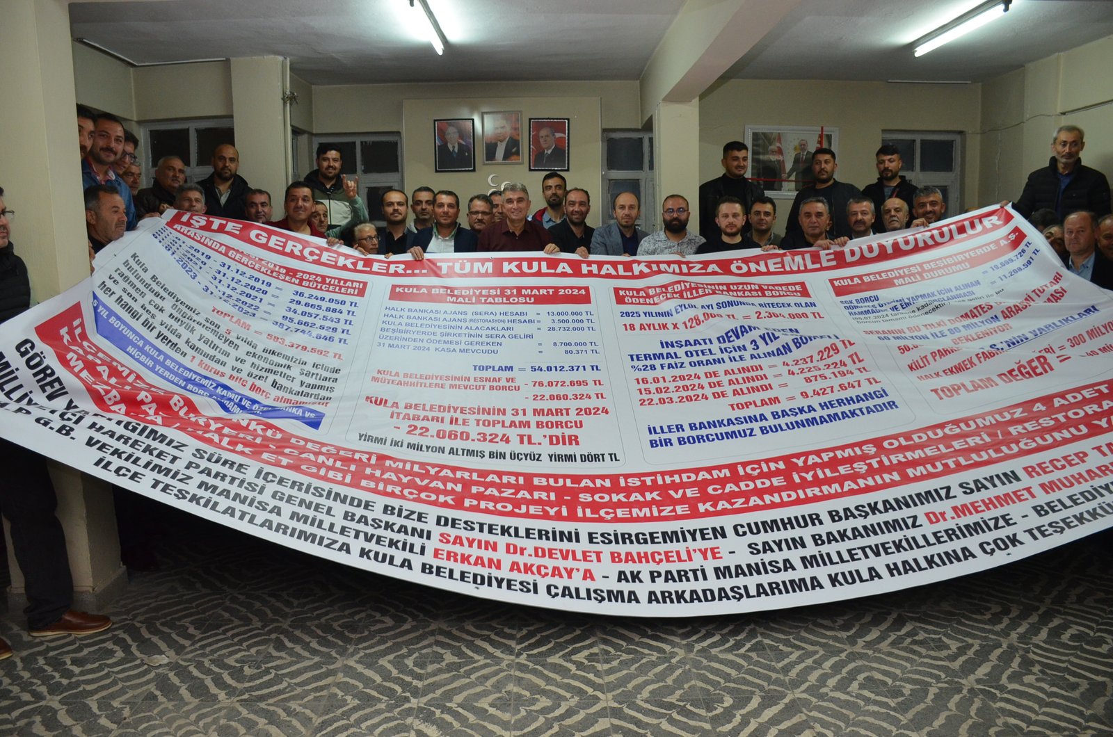 Hüseyin Tosun açıklamalarında “Değerli Kula Halkı, belediye Başkanı olarak 10 yıl hizmet makamında bulunmuş olmanın verdiği sorumluluk bilinciyle her zaman olduğu gibi bugünde şeffaf ve hesap verebilir bir anlayışla Kula Belediyesi’nin mali durumu hakkında doğru ve gerçek bilgileri sizinle paylaşmak istiyorum. Son on yılda Kula Belediyesi’nde mali disiplini sağlayıp, itibar ve değer kazandırdık, 45 bin nüfusa sahip bir ilçe belediyesi olarak birçok il belediyesinin ulaşamadığı bütçe rekorları kırdık ve bununla birlikte şehrimize uzun yıllar hizmet edecek, katma değer sağlayacak milyonlarca liralık yatırım ve eser kazandırdık.