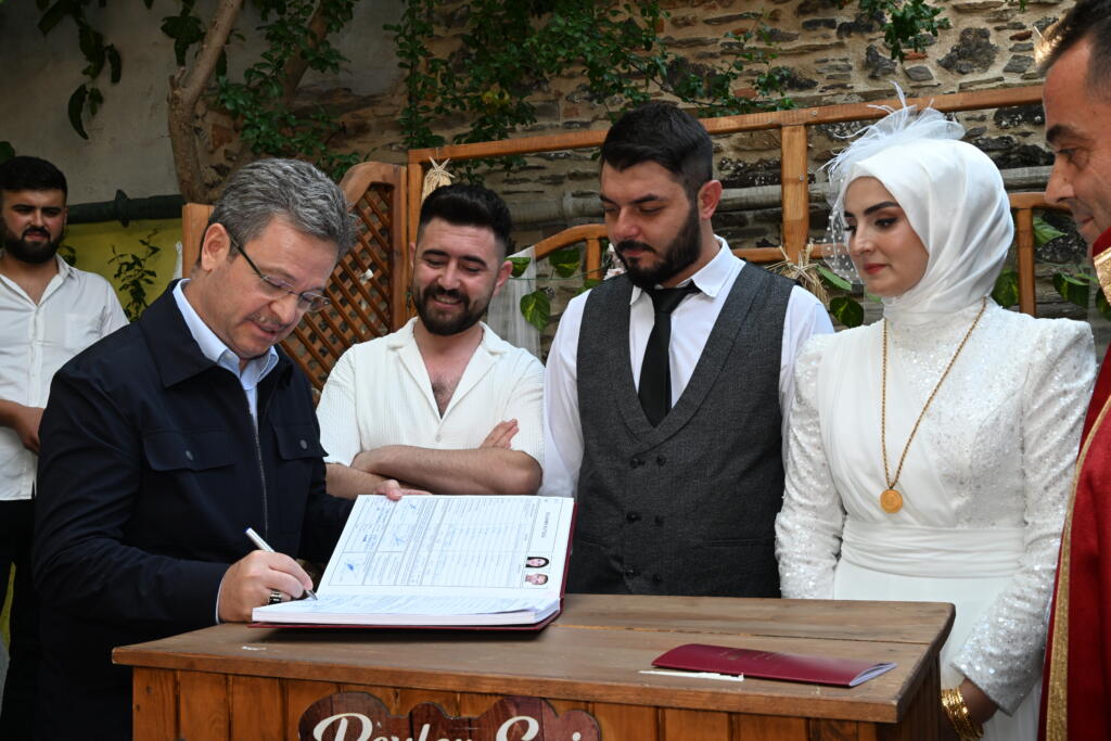 Kula merkezde bulunan geçtiğimiz dönemlerde restore edilen konakları da ziyaret eden Manisa Valisi Enver Ünlü Beyler Evi ziyaretinde genç çiftlerin nikah törenine katılarak mutluluklarına ortak oldu. Vali Ünlü, Halil Aydoğdu ve Handan Durgut çiftine ömür boyu mutluklar diledi.