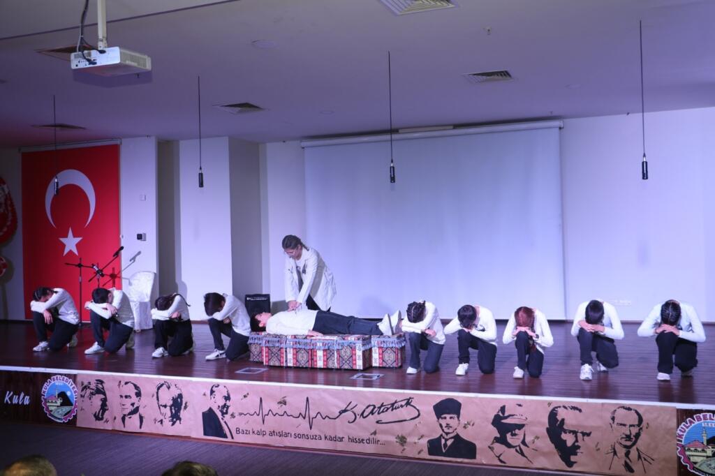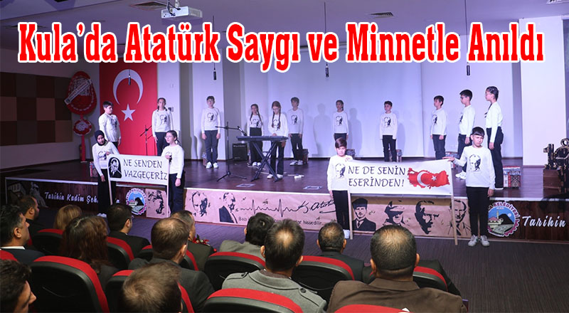 Anma programı Kültür merkezinde devam etti. Saygı duruşu ve İstiklal marşının okunmasının ardından öğrencilerin hazırlamış olduğu resim sergisi açılışı ile devam etti. Atatürk temalı yarışmalarda derece yapan öğrencilere ödüllerini Kaymakam Ömer Ahmet Özdemir ve Kula Belediyesi Başkan Vekili Semra Gündüz verdi. Oratoryo gösterileri şiirlerin okunması ve film gösterisi ile program son buldu.