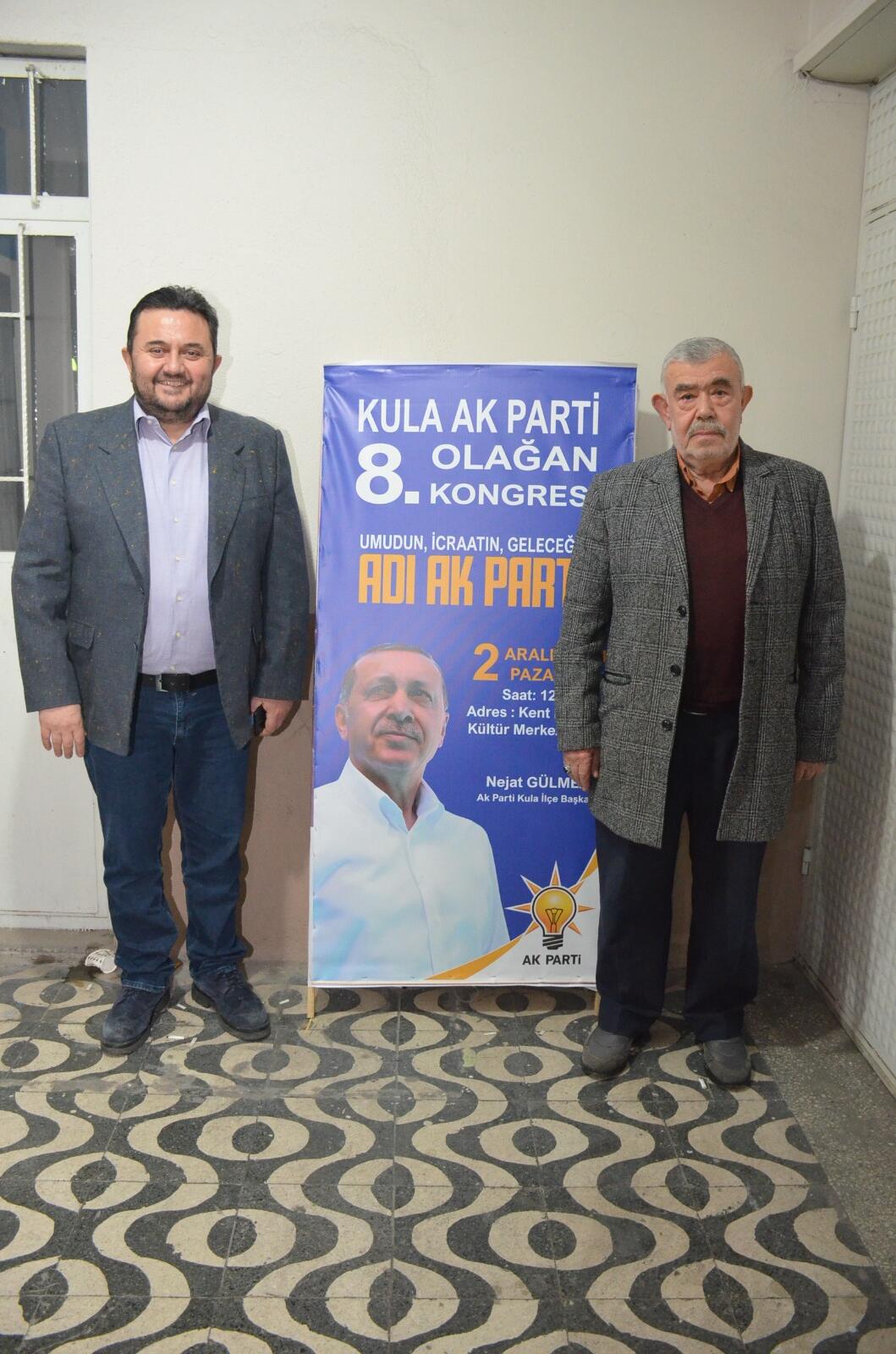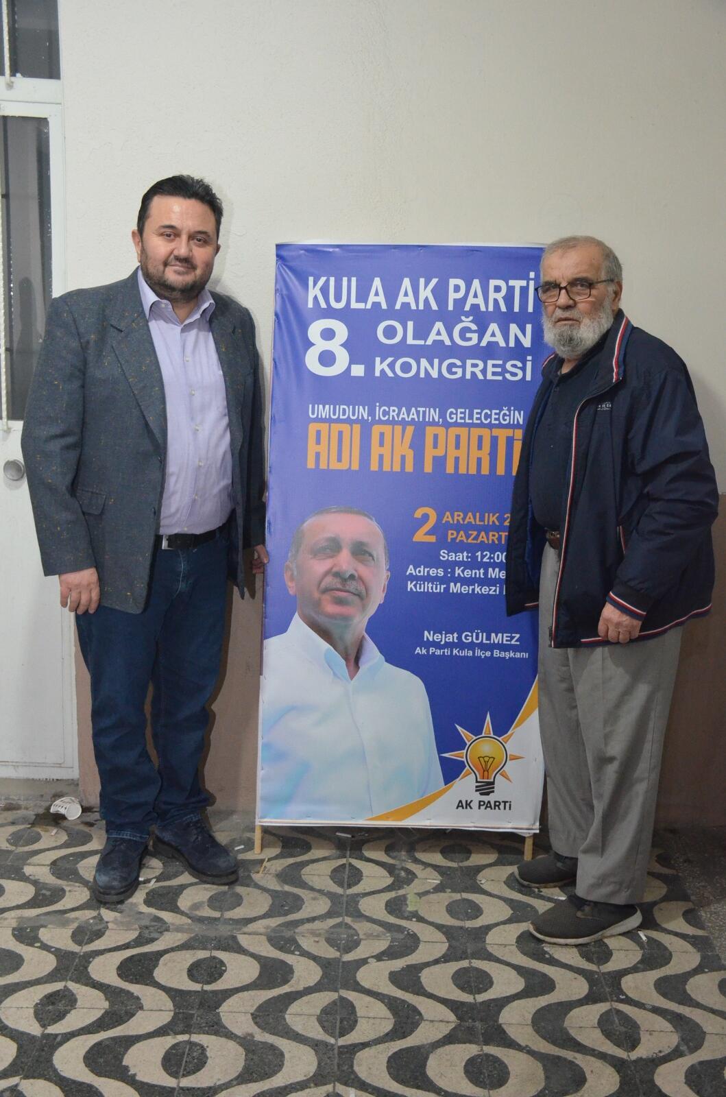 2 Aralık 2024 Pazartesi günü yapılacak olan Kula Ak Parti 8. Olağan kongresi öncesinde delegeler parti binasında bir araya geldi. 4 Ekim 2024 tarihinde Ak Parti genel merkezine çağrılarak ilçe Başkanlığı görevi verilen Nejat Gülmez teşkilatını 2 Aralık 2024 tarihinde yapılacak olan 8. Olağan kongreye hazırlamaya başladı.