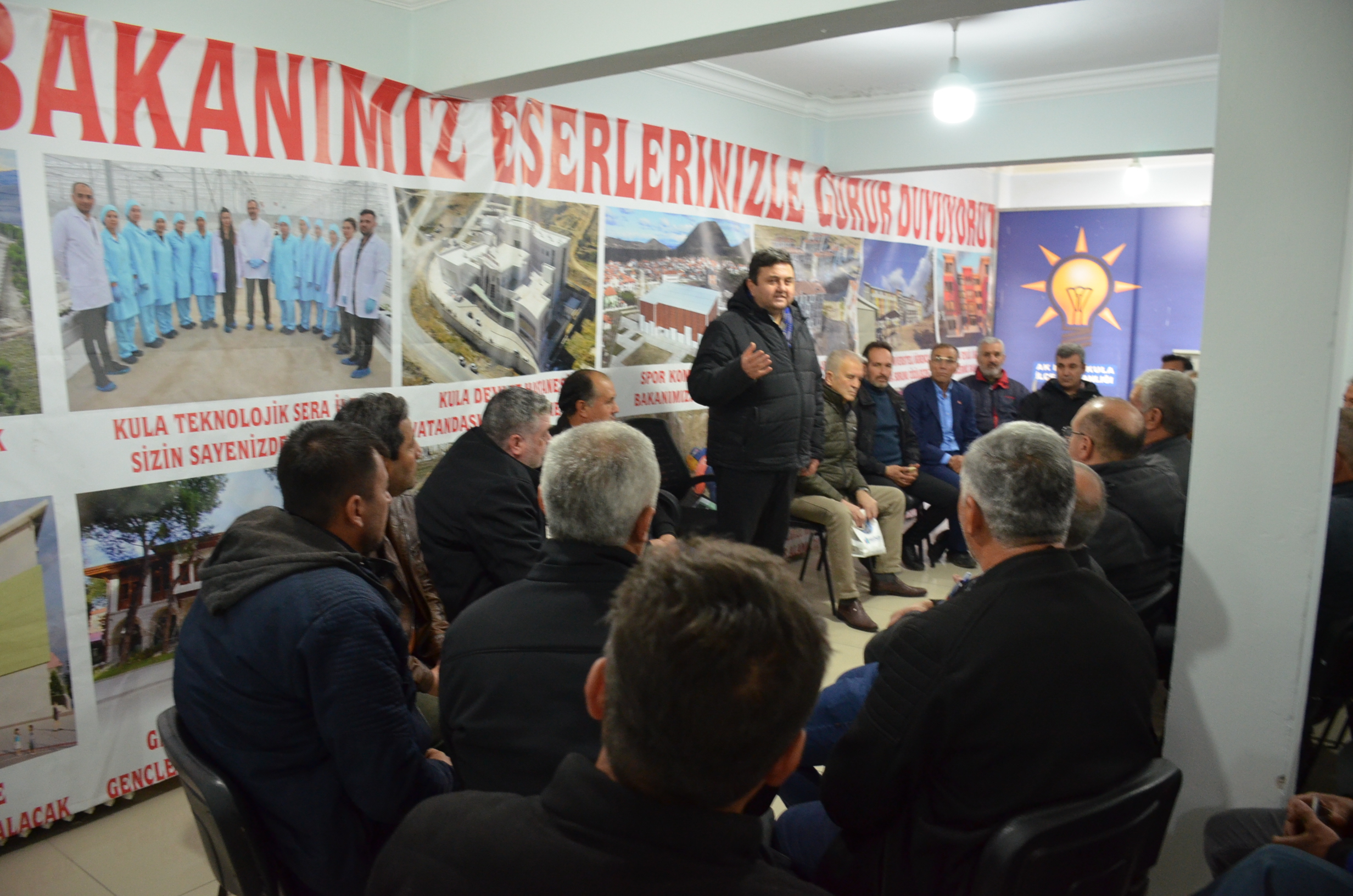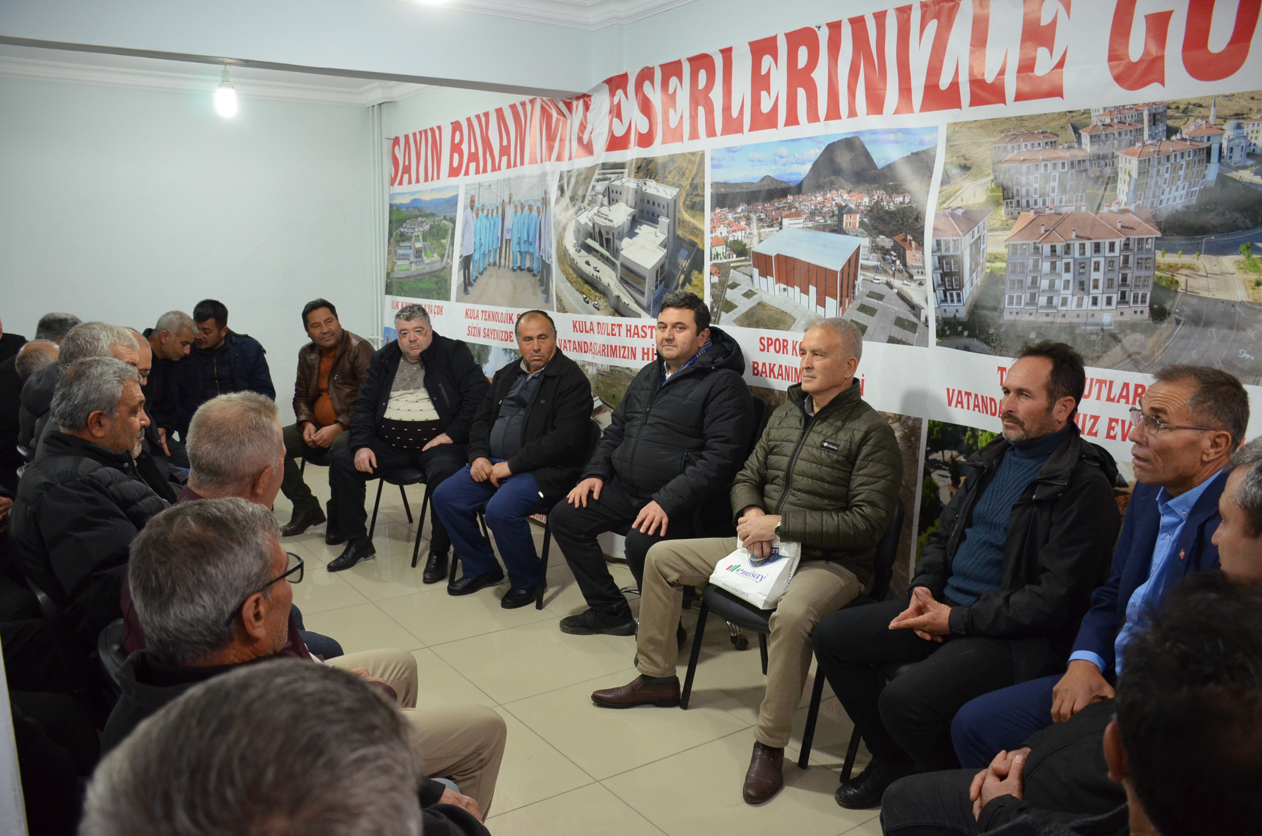 60 Mahalle muhtarı bugün Ak Parti Kula İlçe Teşkilatında Ak Parti Kula İlçe Başkanı Nejat Gülmez’i ziyaret etti. Ziyarette konuşma yapan Başkan Nejat Gülmez “60 mahalle muhtarımız ile birlik beraberlik içerisinde çalışacağız, bundan kimsenin şüphesi olmasın, en son yaptığımız yönetim kurulu toplantımızda tüm mahalle yetkililerimizin sorumlularımızı seçtik bunun yanında tüm mahalle muhtarlarımız ile de görüşmeler yaptık tüm mahalle muhtarlarımıza teşekkür ediyorum, kongrede desteklerini hep hissettim ayrıca şunu da söylemek isterim Partimiz her zaman açık tüm mahalle muhtarlarımızı her zaman partimize bekleriz, bizim vatandaşlarla aramızda köprü vazifesi görecek olan tüm muhtarlarımız bizler için çok değerli partimizin kapısı her zaman tüm muhtarlarımız ve vatandaşlarımız açıktır hiç çekinmeden her zaman görüş alış verişinde bulunmalarını istiyorum, ziyarete katılım sağlayan tüm muhtarlarımıza teşekkür ediyorum” dedi.