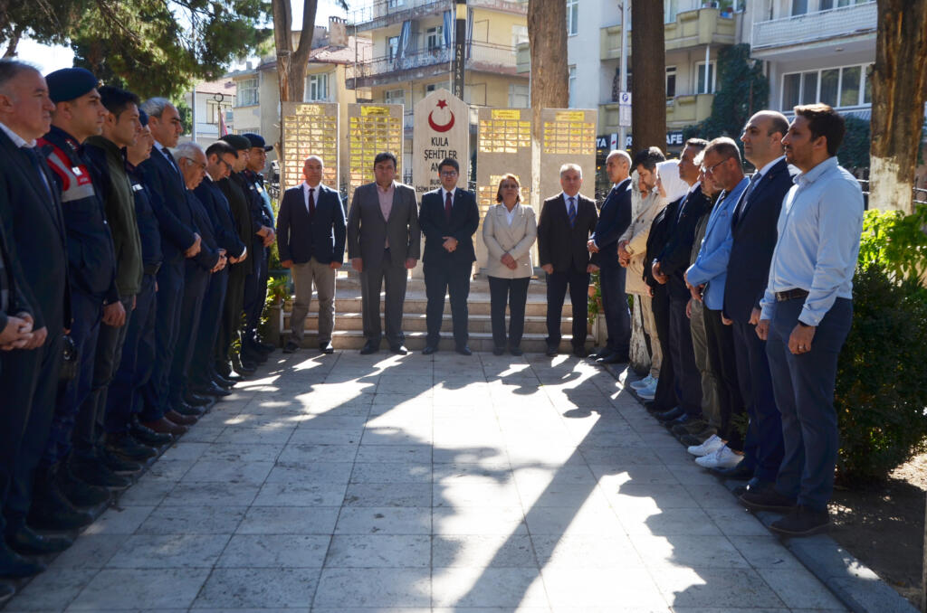 29 Ekim Cumhuriyet Bayramı 101. Yıl dönümü Kutlama programları şehitlik ziyareti ile başladı. Bugün Cuma Namazı öncesinde düzenlenen programda Kula Şehitliği ziyaret edilerek Kuran tilaveti ve dualar okundu. Şehitlik ziyareti programına Kula Kaymakamı Ömer Ahmet Özdemir, Kula Belediye Başkan Vekili Semra Gündüz, daire amirleri, kamu kurum müdürleri katıldı.