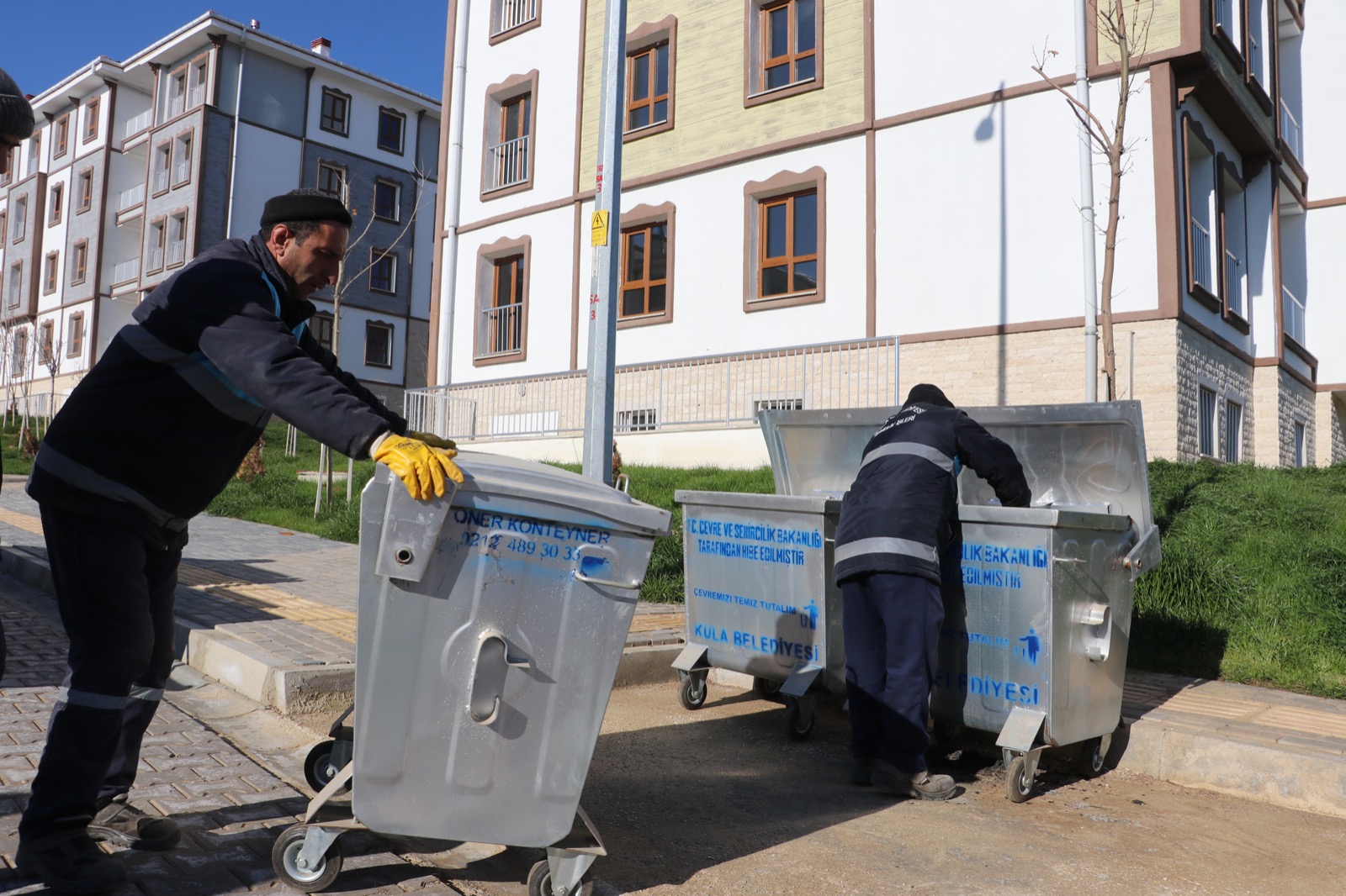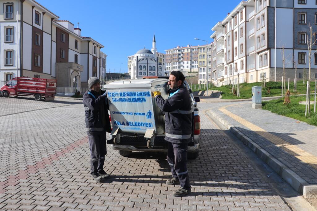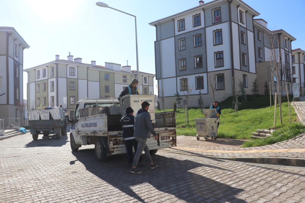 Çevre ve Şehircilik Bakanlığı Toplu Konut İdaresi (TOKİ) tarafından Kula’nın Bey Mahallesi Yakabağ mevkiinde yapımı tamamlanıp hak sahiplerine anahtar teslimi yapılan 304 Konut için Kula Belediyesi Temizlik İşleri Müdürlüğü ekipleri 25 adet çöp konteynerini TOKİ sakinlerinin hizmetine sundu. Temizlik İşleri ekipleri aynı zamanda TOKİ’de çevre temizliği ve halk sağlığı açısından rutin olarak yapılacak çöplerin toplanması, alan temizlikleri, yakıt atıklarının alınması gibi hususlarda planlamalarını tamamladı. Çöp konteynerlerini teslim alan Bey Mahallesi Toplu Konut Site Yöneticisi Hasan Tahsin Öztoprak, Kula Belediye Başkanı Hüseyin Tosun’a ve Temizlik İşleri Müdürlüğü ekiplerine teşekkür etti.