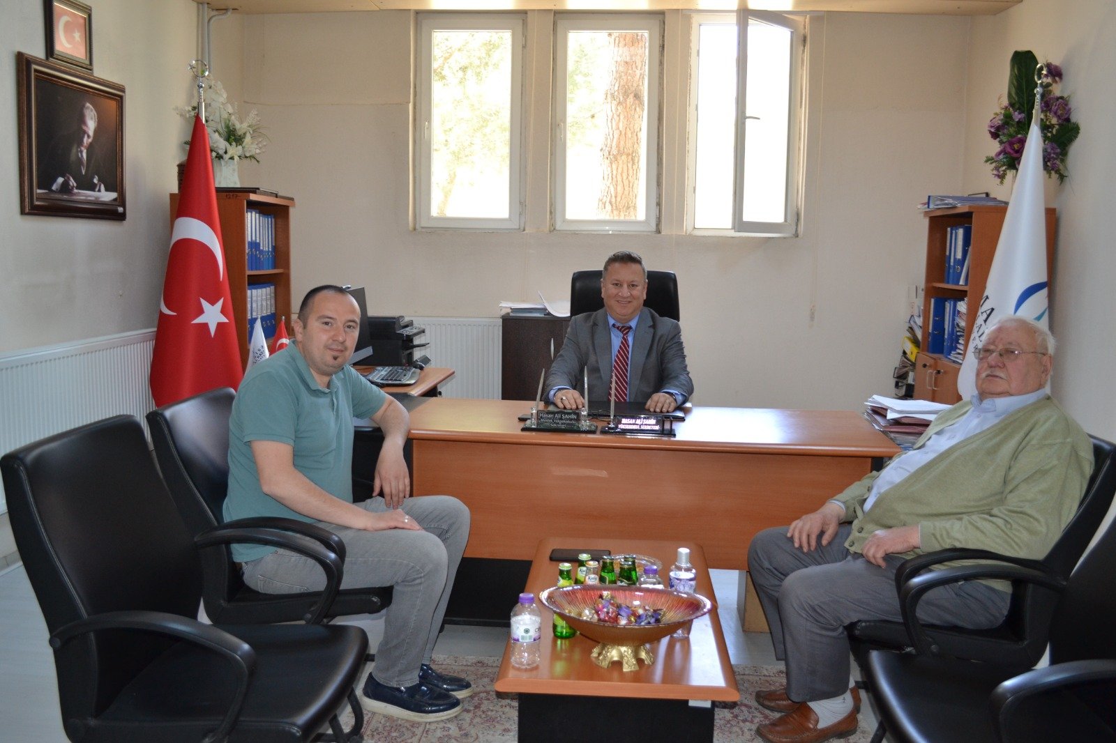 Ege Denge Gazetesi İmtiyaz Sahibi Manisa Gazeteciler ve Yayıncılar Derneği Başkan Vekili Türkiye Gazeteciler Federasyonu Yönetim Kurulu Üyesi Alaettin Yakın, Manisa Gazeteciler ve Yayıncılar Derneği Onur Kurulu Başkanı Hikmet Sepet, Manisa Gazeteciler ve Yayıncılar Derneği Üyesi Mehmet Aktürk Celal Bayar Üniversitesi Kula Meslek Yüksekokulu Sekreteri Hasan Ali Şahin’i hayırlı olsun ziyaretinde bulundular.