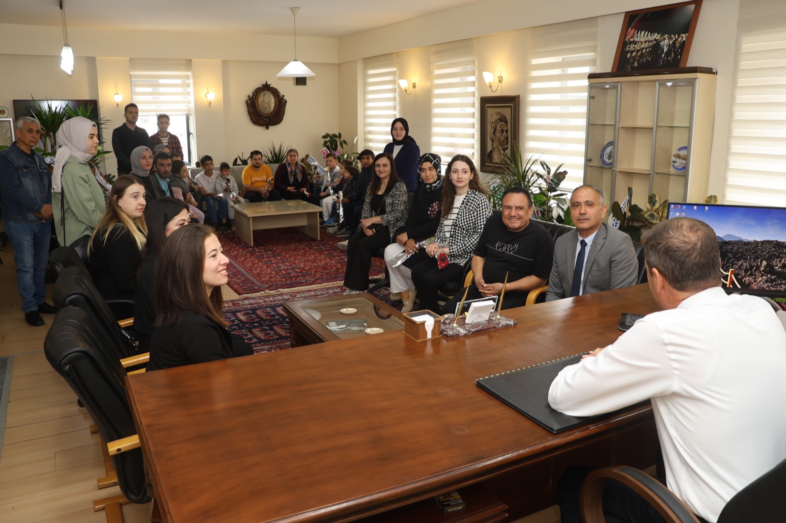 Başkan Dönmez, bu özel ziyarette 23 Nisan Ulusal Egemenlik ve Çocuk Bayramı ile TBMM’nin açılışının 104. yıl dönümü kutlamaları kapsamında özel öğrencileri başkanlık makamına davet ederek anlamlı bir jestte bulundu. Öğrenciler, Başkan Dönmez’in misafirperverliği ve ilgisi karşısında mutlu bir şekilde gün geçirdiler.