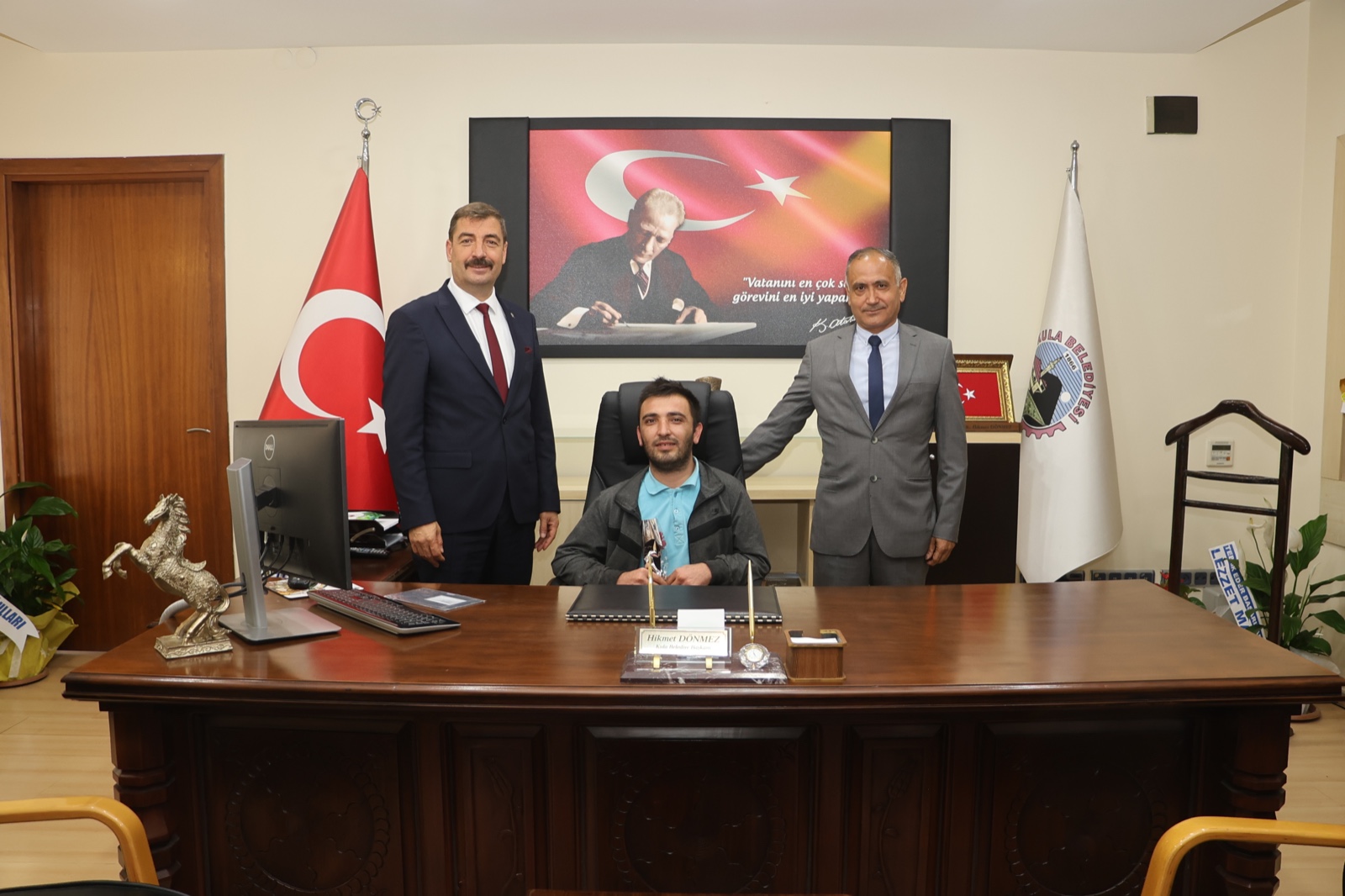 Ay Deniz Özel Eğitim ve Rehabilitasyon Merkezi Müdürü Hüseyin Ercan önderliğinde, özel eğitim öğretmenleri ve öğrencileri, Kula Belediye Başkanı Hikmet Dönmez’i makamında ziyaret etti.