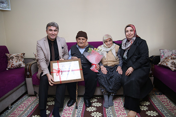 Kula Belediye Başkanı Hüseyin Tosun, 14 Şubat Sevgililer Günü çerçevesinde eşi Emine Tosun ile birlikte, evlilikte 60 yılı deviren Kulalı ihtiyar çiftleri ziyaret etti. Samimi sohbetlerle geçen ev ziyaretlerinde Başkan Tosun, bir yastıkta bir ömür aile birliğini sürdüren asırlık çınarlara evlilik kütüklerinin çerçevelendiği tabloları hediye etti. 63 yıllık evli olan İbrahim ve Sabriye Kavas çifti, 60 yıllık evliler İsmail ve Nimet Efeoğlu çifti, 57 yıllık evli Necati ve Suna Baştürk çifti ile 71 yıldır aynı yastığa baş koyan Mustafa – Ayşe Bekar çifti sevginin günlük değil ömürlük olması için gençlere evliliğin temelinde karşılıklı saygı ve hoşgörü nasihatinde bulundu. Süprizden büyük memnuniyet duyan çiftler, nezaketlerinden dolayı Başkan Tosun’a teşekkür etti.