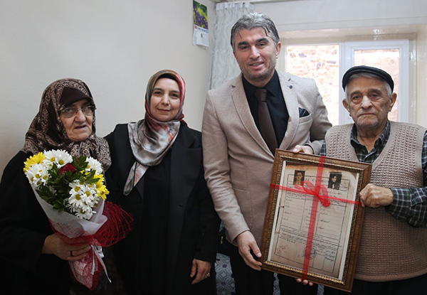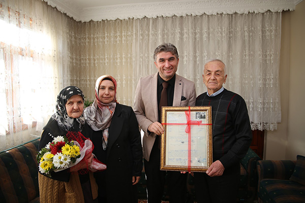 Kula Belediye Başkanı Hüseyin Tosun, Kula’da evliliği 60 yılı aşan çiftleri 14 Şubat Sevgililer günü dolayısıyla ziyaret ederek, evlilik kütüklerini hediye etti.