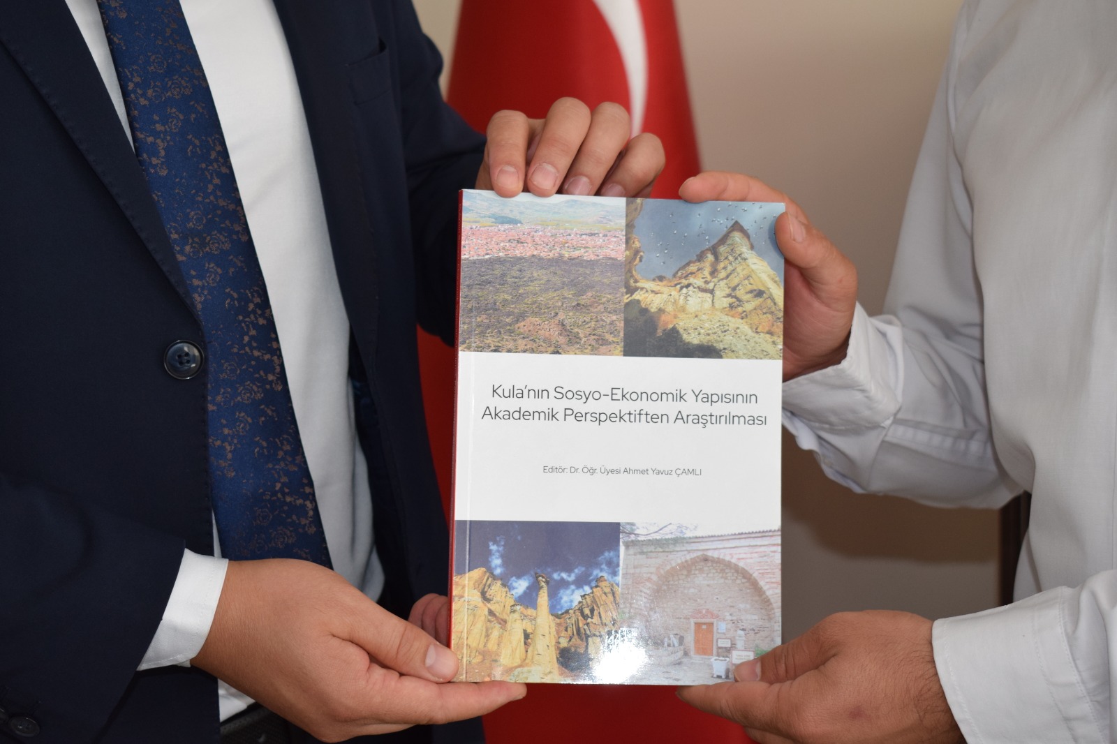 Manisa Celal Bayar Üniversitesi Kula Meslek Yüksekokulu Müdürü Doç. Dr. Ahmet Yavuz Çamlı, Kula Kaymakamı Sayın Birkan Tatlısöz’e hayırlı olsun ziyaretinde bulundu. Kula MYO müdürü Doç. Dr. Çamlı, üniversite hakkında, öğrenci sayıları ve mevcut bölümler hakkında Kaymakam Tatlısöz’e bilgi verdi. Çamlı, Kula MYO öğretim elemanlarının uzmanlık alanları doğrultusunda Kula’ya yönelik yaptıkları araştırmaları kapsayan Kula kitabını da Kaymakam Tatlısöz’e hediye etti.