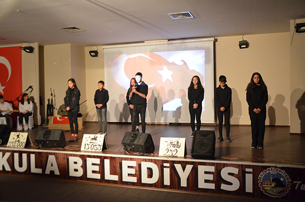 Şehitlik ziyareti sonrasında kültür merkezinde Rafet Üçelli Orta Okulunun hazırlamış olduğu programda ilk olarak saygı Duruşu ve İstiklal Marşı okundu. Program da günün anlam ve önemini belirten konuşma yapıldı, öğrencilerin hazırlamış olduğu oratoryo, şiirler ve sinevizyon gösterilerinin ardından şiir ve kompozisyon yarışmalarında derece yapan öğrencilere ödülleri verildi.  Son olarak Kula Kaymakamı Kemal Duru günün anlam ve önemini belirten konuşmasını yaptı.