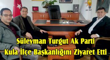 Süleyman Turgut Kula İlçe Başkanlığını Ziyaret Etti Adalet ve Kalkınma Partisi Manisa İl başkanı Süleyman Turgut Kula İlçe Başkanlığını ziyaret etti. İl Başkanı Süleyman Turgut u Kula İlçe Başkanlığın...