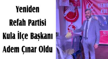 Yeniden Refah Partisi Kula İlçe Başkanı Adem Çınar Oldu Yeniden Refah Partisi Kula İlçe Olağan ilçe kongresi yapıldı. Yapılan seçimli olağan kongrede tek aday olan Adem Çınar’ın listesi seçildi. Kula ...