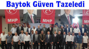 Baytok Güven Tazeledi Manisa’nın Kula ilçesinde Milliyetçi hareket Partisi 14. Olağan kongresi yapıldı. Mevcut başkan Nazım Baytok’un tek liste ile girdiği olağan seçimli kongrede Baytok yeniden başka...
