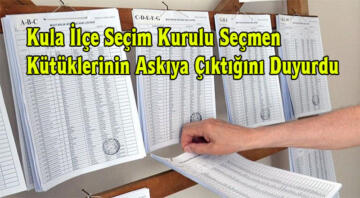 Kula İlçe Seçim Kurulu Seçmen Kütüklerinin Askıya Çıktığını Duyurdu 31 Mart 2024 Pazar günü yapılacak olan mahalli idareler genel seçimleri için seçmen kütükleri askıya çıktığını duyuran Kula İlçe Seç...