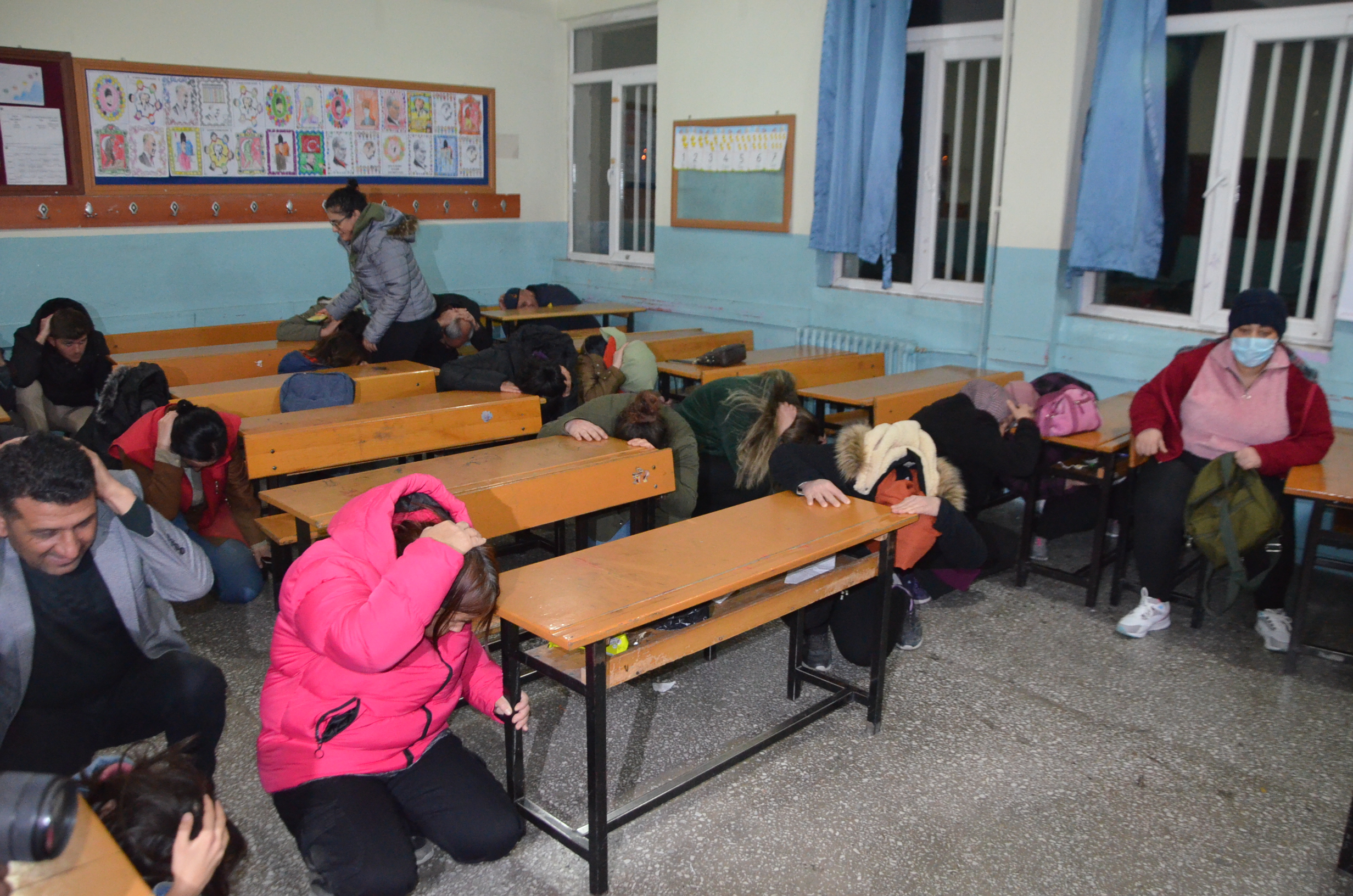 Türkiye’de eş zamanlı gerçekleştirilen deprem tatbikatı Kulada da yapıldı.