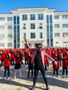 Okulun folklor öğretmeni Hasan Tekin’in aylardır süren çalışmaları meyvesini verdi. Tekin ve 10 fedakâr öğretmen arkadaşı, okulun yaklaşık 300 öğrencisiyle birlikte, 29 Ekim Cumhuriyet Bayramı öncesi sahne aldı.