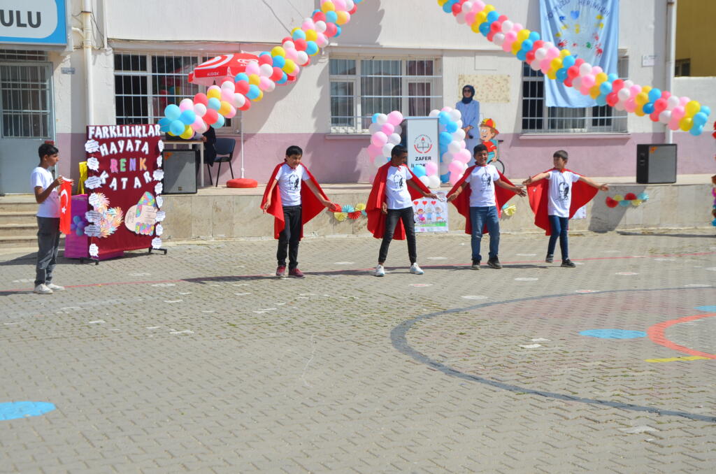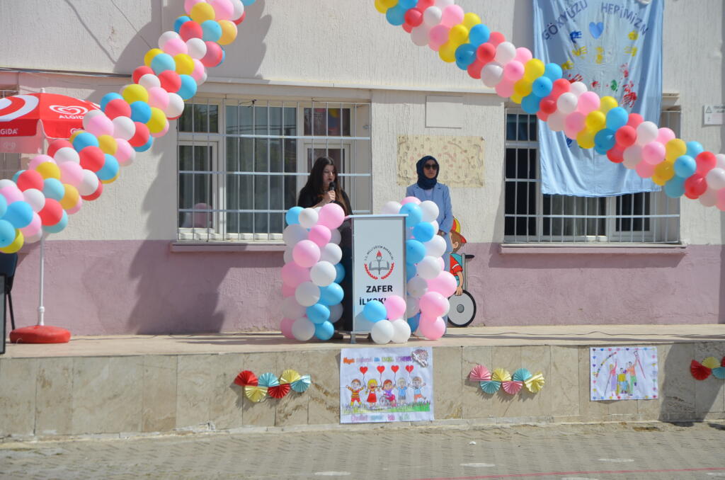 Zafer İlkokulu bahçesinde düzenlenen program saygı duruşu ve İstiklal Marşının okunmasıyla başladı. Günün anlam ve önemini belirten konuşmayı Özel Eğitim öğretmeni yaptı, öğrencilerin hazırlamış olduğu şiirlerin okunması, dans gösterileri, halk oyunu gösterileri ile devam etti.