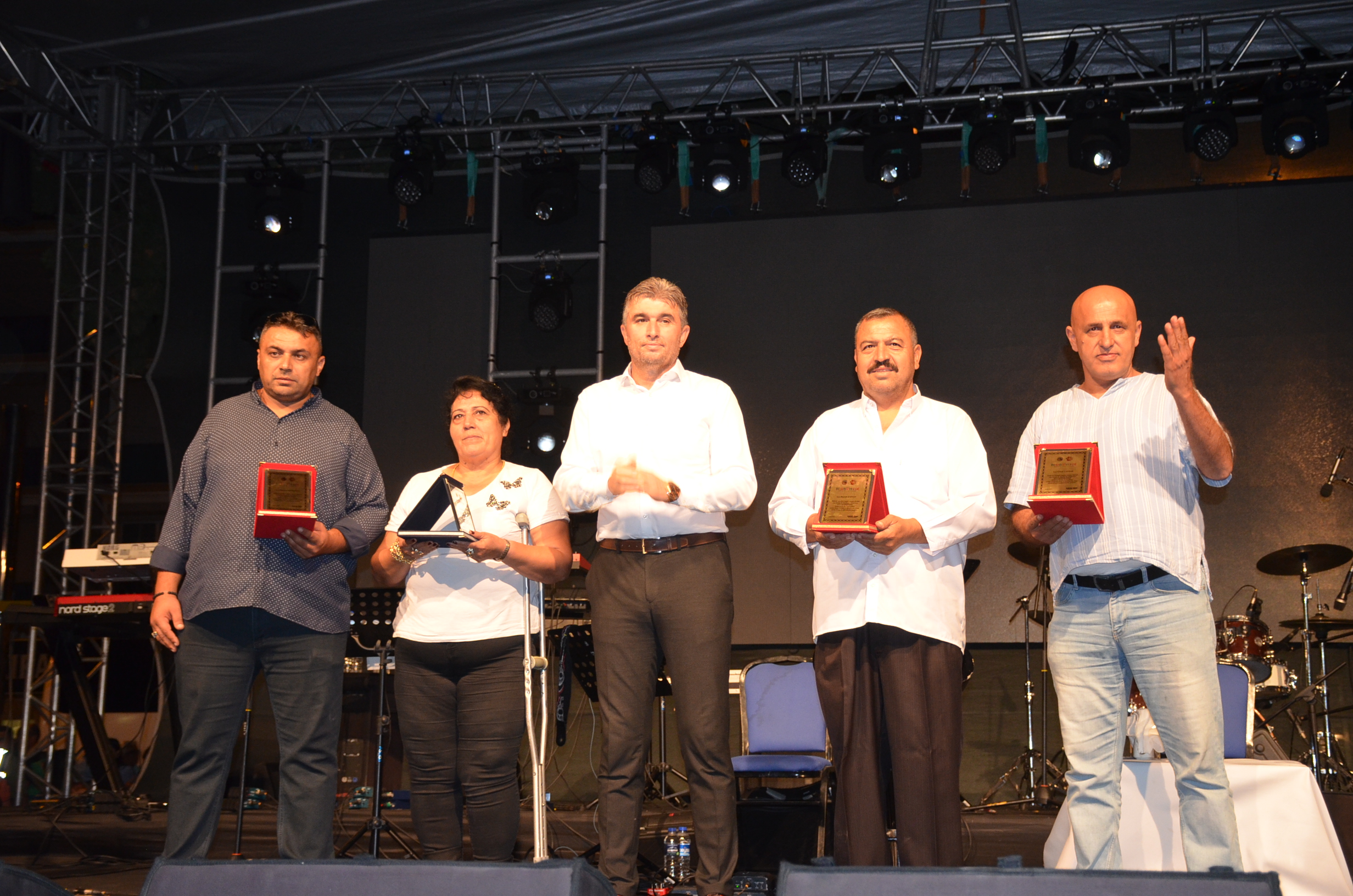 Konser’de Kula Kaymakam Birkan Tatlısöz ve Belediye Başkanı Hüseyin Tosun, festival hatırası olarak Mustafa Ceceli’ye çiçek ve maket Kula Evi hediye etti.