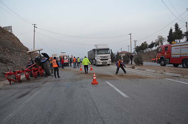 Uşak-İzmir kara yolu Kula Küçük Sanayi Sitesi mevkisinde Buğra Kök (25) kullandığı 67 ZB 192 plakalı otomobil, aynı yönde seyir halindeki Turgut Tomas (63) idaresindeki 45 RA 5412 plakalı pulluk takılı traktöre arkadan çarptı.