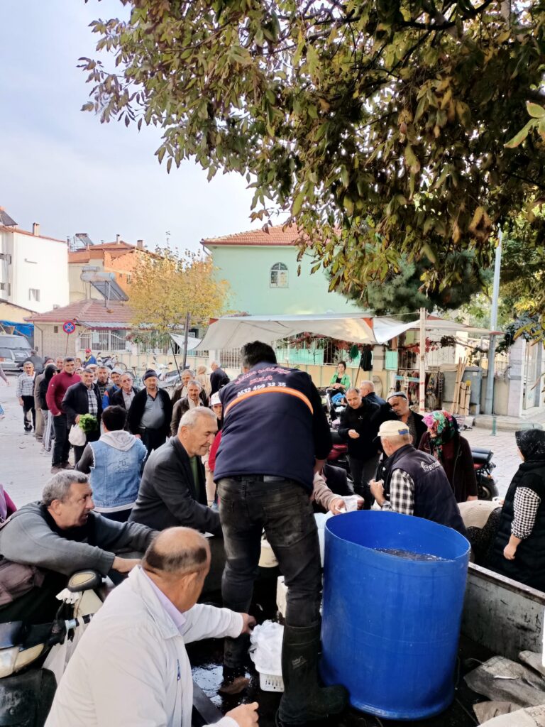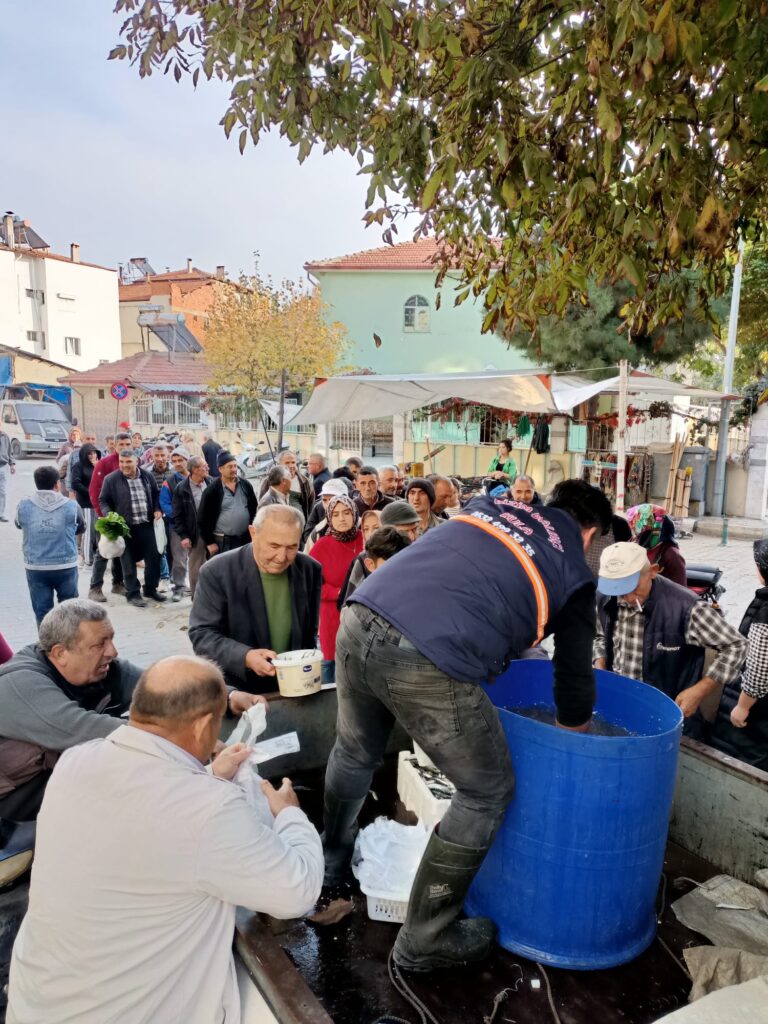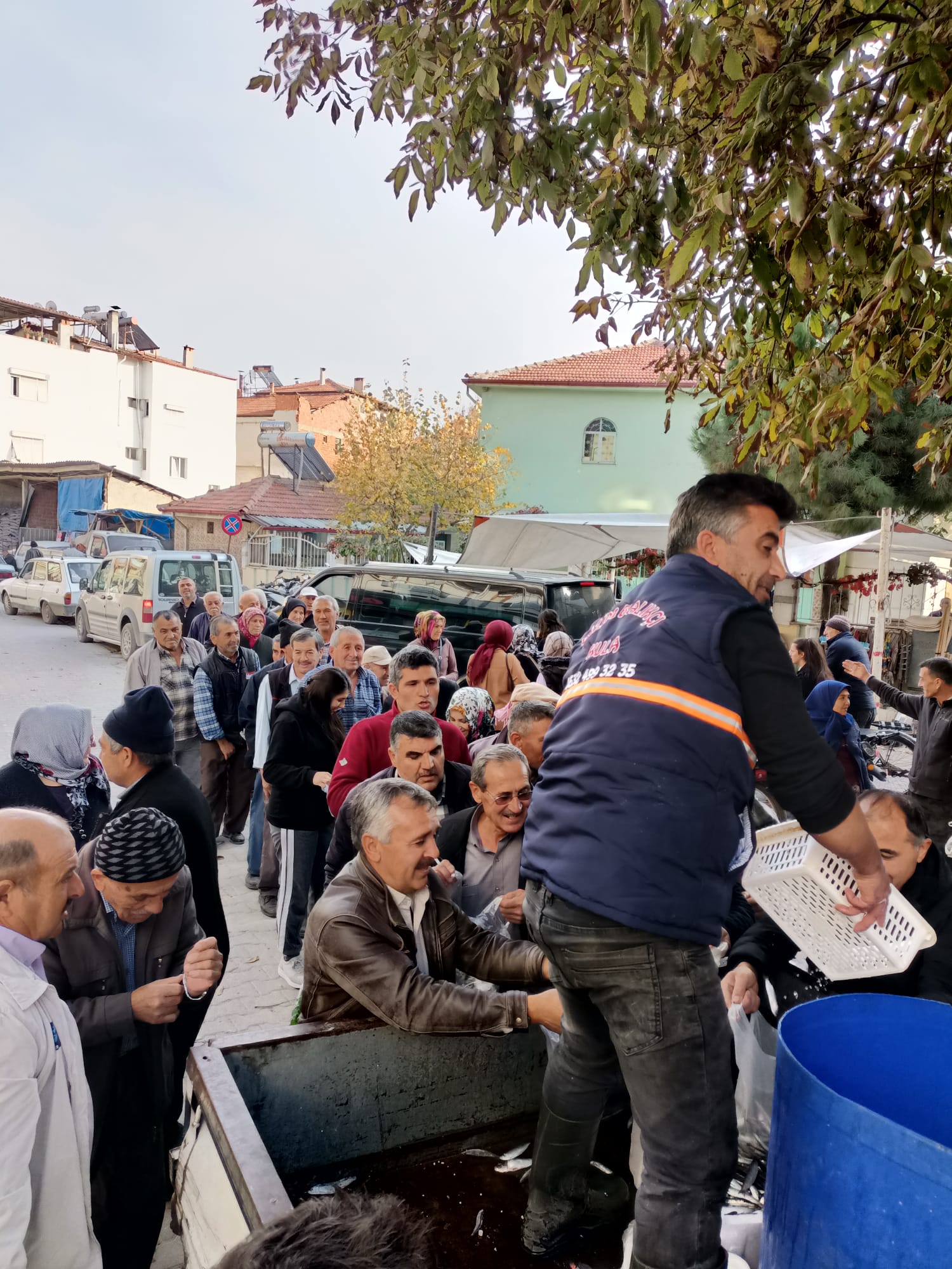 Bizim Balıkçı işletme sahibi Şahin Arslan Kula pazarında 1 ton hamsi ve sardalyayı ücretsiz olarak dağıttı.