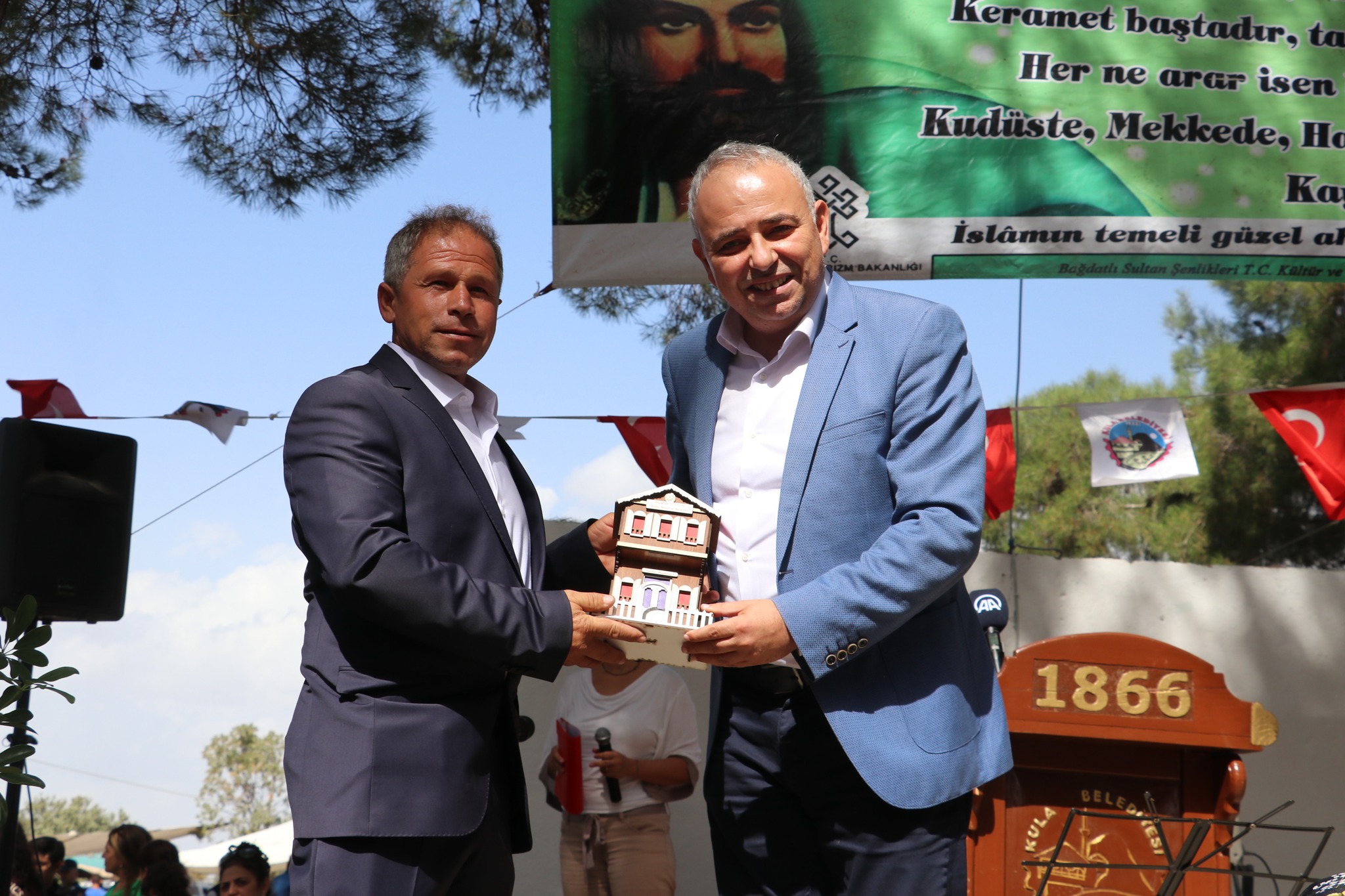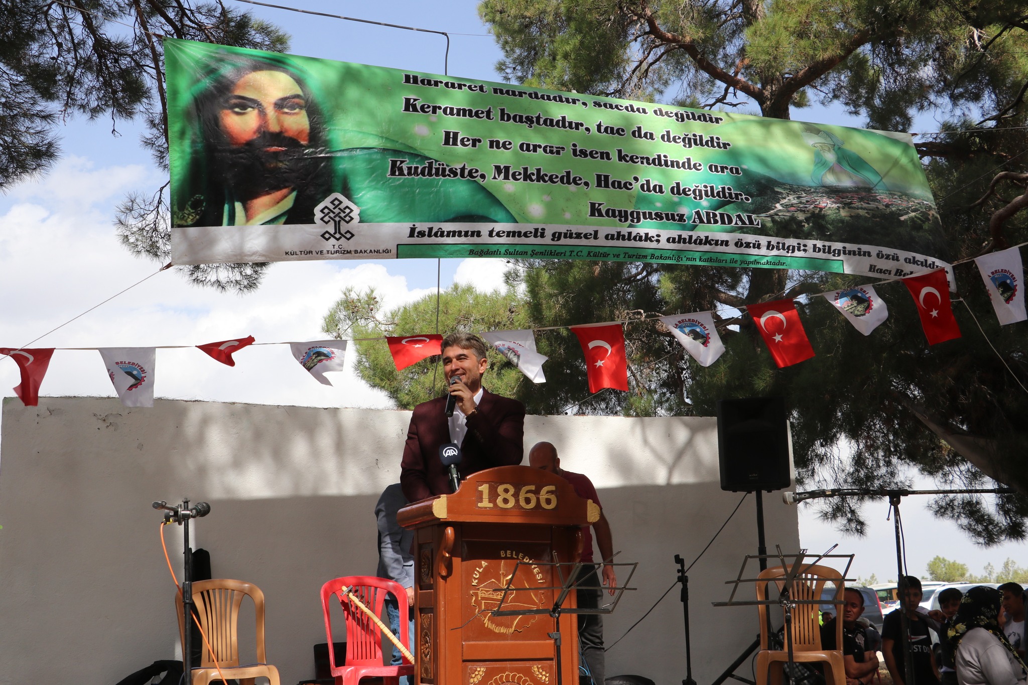Kula Belediye Başkanı Hüseyin Tosun konuşmasında, Geçen hafta Kenger Selvili Dede, bu hafta da Bağdatlı Sultan’ın makamındayız. Hacı Bektaş-ı Veli hazretleri elin açık, gönlün açık, sofran açık olsun diyor. Bu gün burada elimizde açık, gönlümüzde açık, soframızda açık. Aslanlarla ceylenler aynı kucakta gönül gönüle can canayız. Değerli canlar bizler her dönemde avlu aşı millet olarak bal yapmışız birbirimize hep destek olduğumuzu söyledi.
