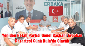 Yeniden Refah Partisi Genel Başkanı Erbakan Pazartesi Günü Kula’da Olacak Yeniden Refah Partisi Genel Başkanı Dr. Fatih Erbakan Manisa ve İlçe ziyaretleri kapsamında Kula’tı ziyaret ederek esnaf ziyar...