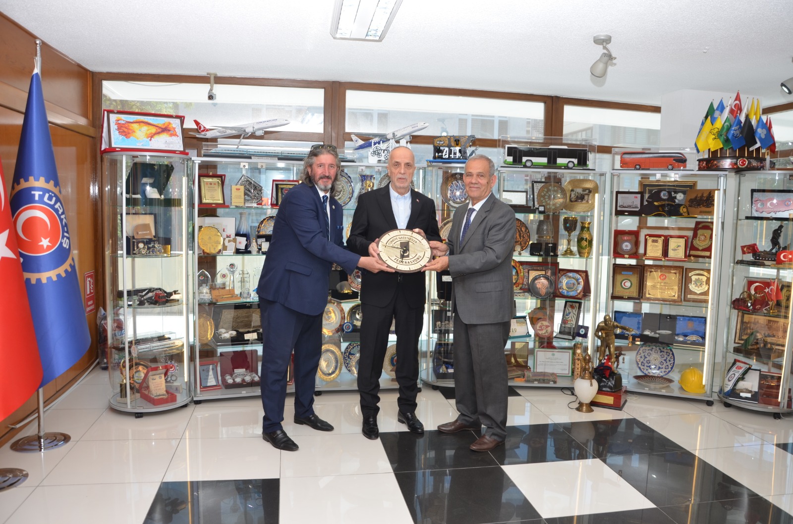 Türkiye Gazeteciler Federasyonu ( TGF) Genel Başkanı Yılmaz Karaca ve Genel Mali Sayman Derya Akbıyık, Türkiye İşçi Sendikaları Konfederasyonu TÜRK-İŞ Genel Başkanı Ergün Atalay’ı makamında ziyaret etti.