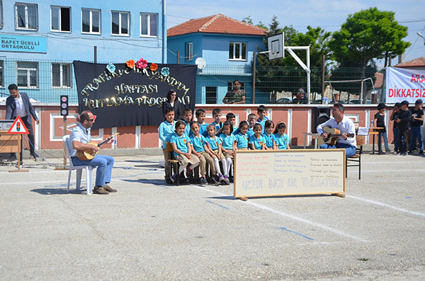 Rafet Üçelli İlkokulu tarafından hazırlanan program ilk olarak saygı duruşu ve istiklal marşının okunmasıyla başlarken günün anlam ve önemini belirten konuşmayı Rafet Üçelli ilkokulu müdürü Celal Harmandalı yaptı. Öğrencilerin hazırlamış olduğu şiirlerin okunması müzik gösterileri skeçler ile devam eden program protokol üyeleri ve veliler tarafından beğeni topladı.