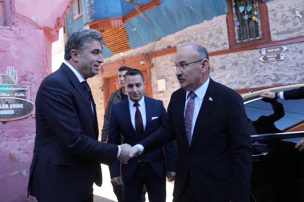 Vali Yaşar Karadeniz, Kula ziyaretinde Kula Kaymakamı Birkan Tatlısöz ve Belediye Başkanı Hüseyin Tosun ile birlikte Kula Belediyesi Dr. Aristi El Sanatları Atölyesi’ni de ziyaret etti.
