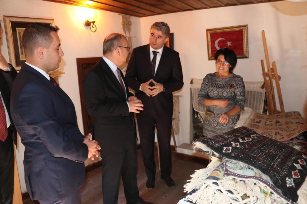Dr. Aristi El Sanatları Atölyesi’nde görevli El Sanatları Eğitmeni Sultan Gençtürk ve atölye görevlileri tarafından karşılanan Vali Yaşar Karadeniz, burada dokuma faaliyetleri ve çocuklara yönelik sanatsal eğitim projelerine ilişkin çalışmalarla ilgili bilgi aldı.