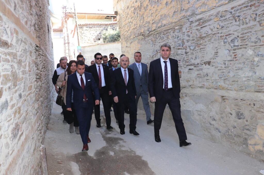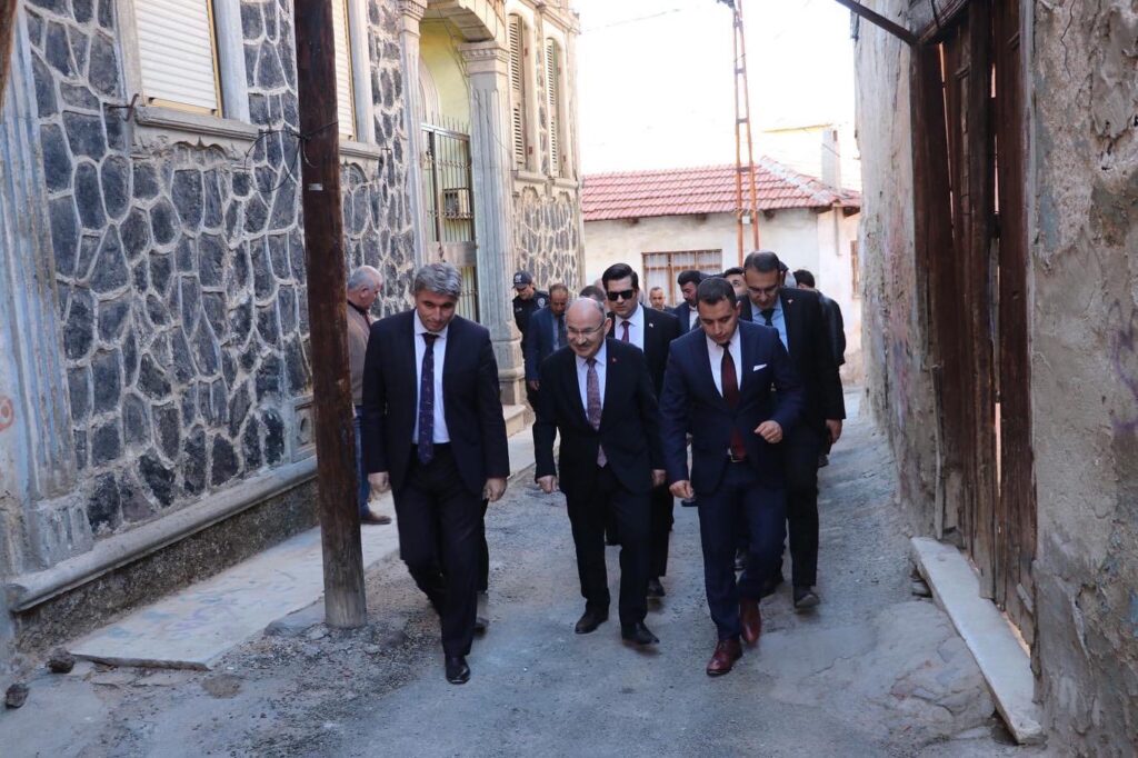 Kula Organize Sanayi Bölgesi Müteşebbis Heyet Toplantısına katılan Vali Yaşar Karadeniz, toplantı sonrası Kaymakam Bikran Tatlısöz, Belediye Başkanı Hüseyin Tosun ile birlikte Manisa Valiliği Yatırım İzleme Koordinasyon Başkanlığı (YİKOB) ile birlikte sürdürdüğümüz sokak cephe sağlıklaştırma çalışmaları kapsamında Mustafa Şapçı Sokak ile Zafer Sokak’ta bulunan tescilli tarihi yapılarımızın dış cephelerinin aslına uygun olarak restore işleri ve tarihi Zafer Okulu restorasyonu uygulamalarını yerinde inceleyerek uygulama yapılan projelere ilişkin teknik personellerden bilgi verdi.
